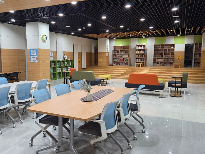 책마루는 열린 공간으로 보드게임을 즐기고 다양한 도서를 읽을 수 있습니다. 또한 편안한 분위기 속에서 모임 활동을 진행하는 공간으로도 활용되고 있습니다.